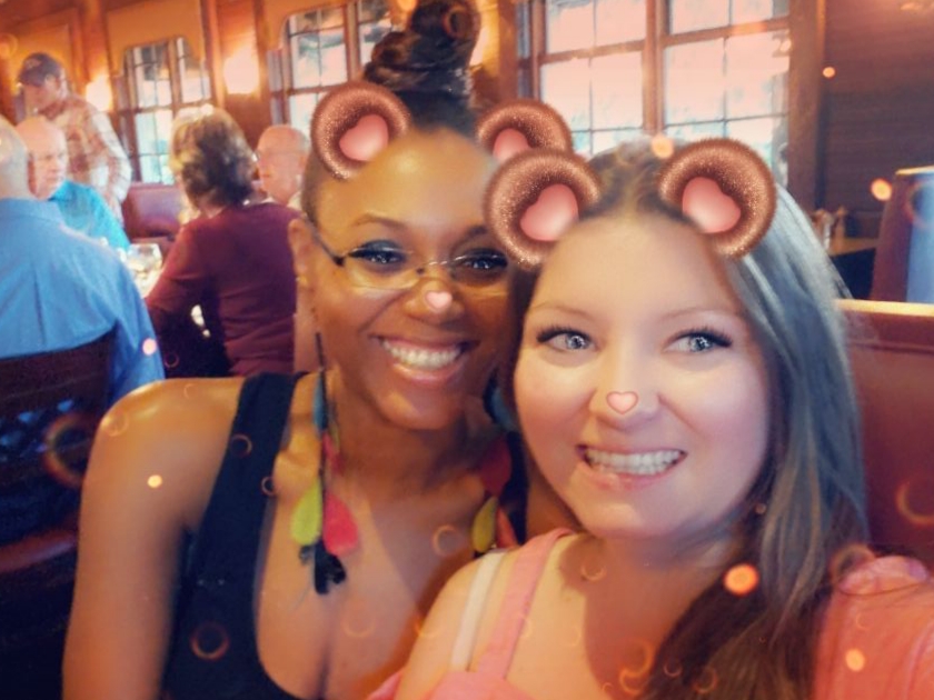 My best friend Cassy and I went to tour the venue and pick the menu for her baby shower. We took this picture right after we had dinner. Of course we were both all smiles after a good meal and picking the venue. She’s so excited to be having a girl. I’m excited I get to buy a bunch of pink, lol! Hopefully she doesn’t grow up to hate it because I bought her so much.