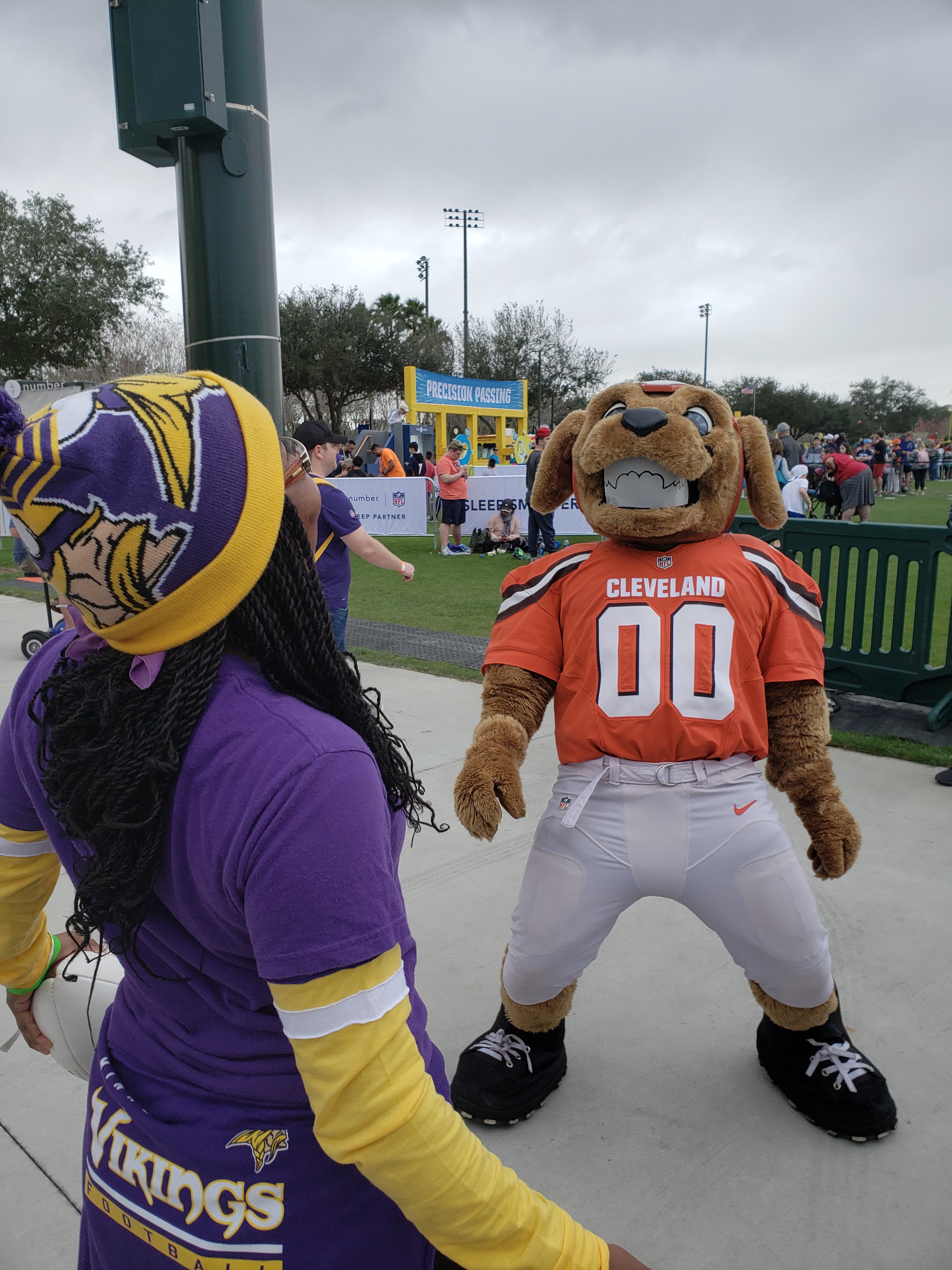 Seeing my sister dance with the mascot from the Cleveland Browns. She was dancing and he looked over and saw her dancing and he started dancing with her too. It was just so cute. It made her day! It made my day!!