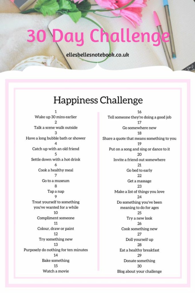 So, I found this happiness challenge on Pinterest and I wanted to share it with you guys. This is actually for me because I need it but like always when I find something that I think is helpful I like to share it!