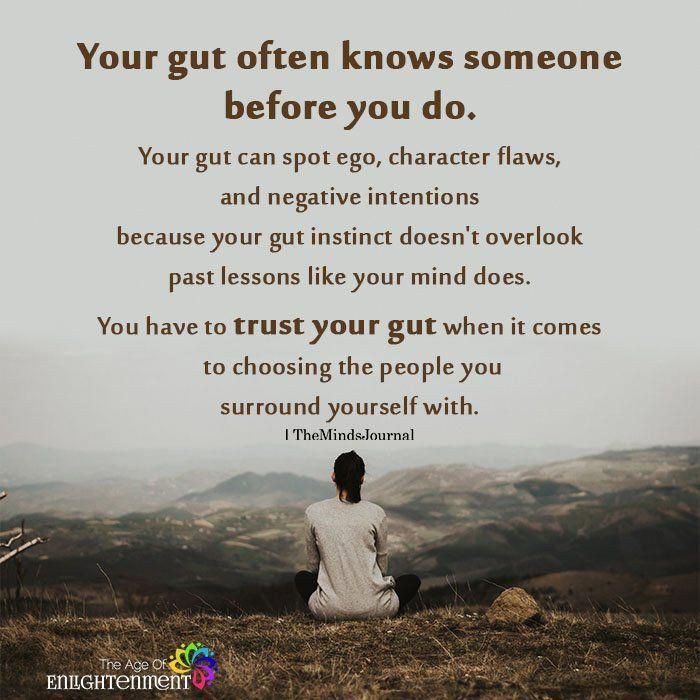 I used to hang out with someone that turned into a monster on several occasions. I would leave before it got bad most of the time because I knew it was coming. I knew something was off with her. I overlooked it most of the time because she was friend. Well, I thought she was. She was absolutely not! My gut told me more than once to get away from her and I ignored it. I have now learned and this person is banned from my life forever. My gut has never steered me wrong. Always trust your gut!