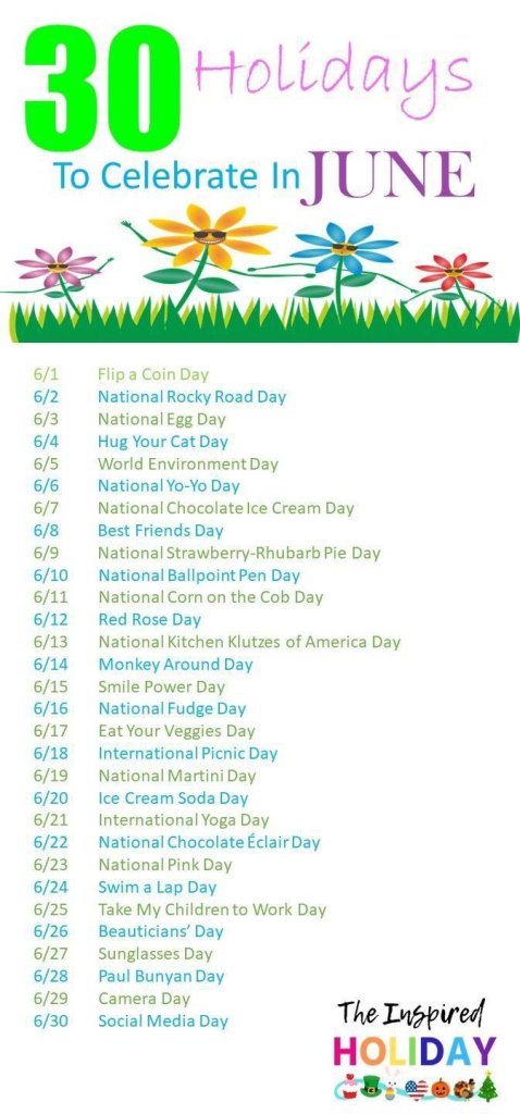 Although June is the start of Hurricane season, there’s lots of fun things celebrated during the month! I live in Florida and this month is when it truly starts getting hot. Who am I kidding? It’s been hot, lol! Seriously, this the last month of 85 and 90 degree weather. The last month you can go to the parks here and not melt.