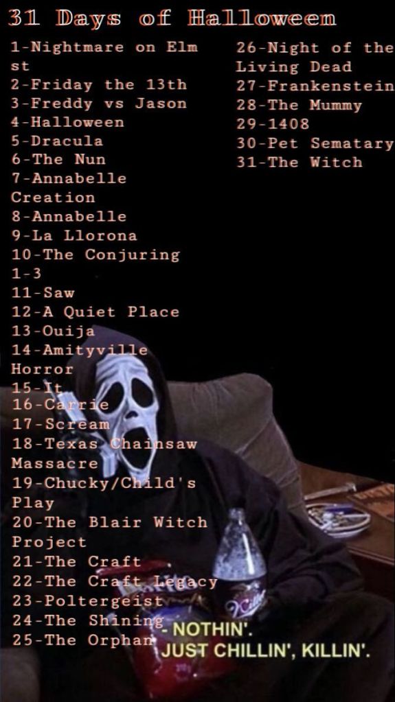 I’m aware today is the 2nd, so watch 2 one day, lol! I love all things Halloween 🎃! This is a challenge I know i can absolutely do! Although Halloween is my favorite time of the year, you’d think Michael Myers is my favorite villain but Freddy Krueger is! That was a long sentence, lol! I absolutely love this month.